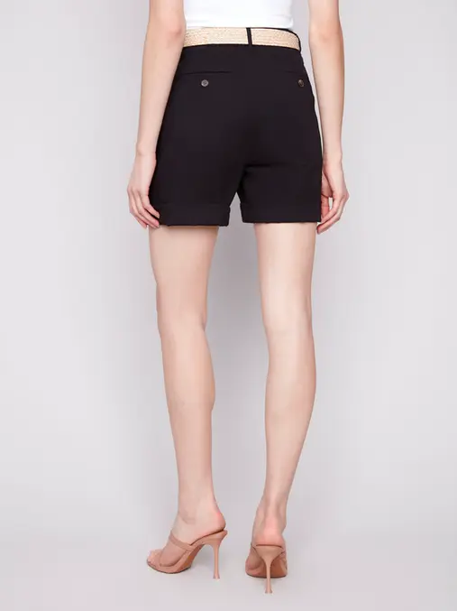 Your new favorite shorts await for those laid-back days and exciting outings! These black shorts are made with stretchy twill and have a trendy cuffed hem, complete with a fashionable belt to fit your waist just right. Ideal for a beach trip or a casual day out, they promise to keep you looking cool and feeling comfy all spring and summer.