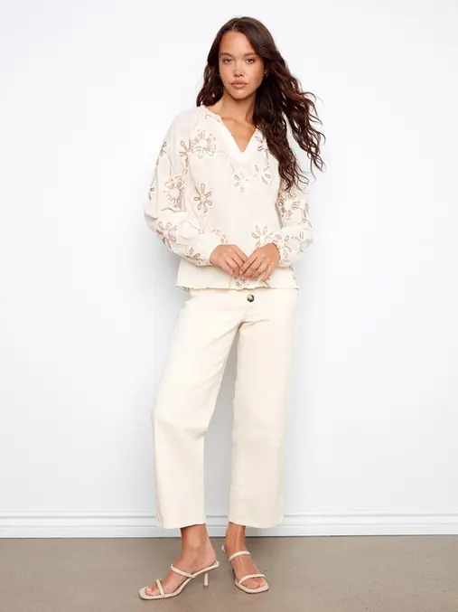 Embroidered Cotton Popover Blouse