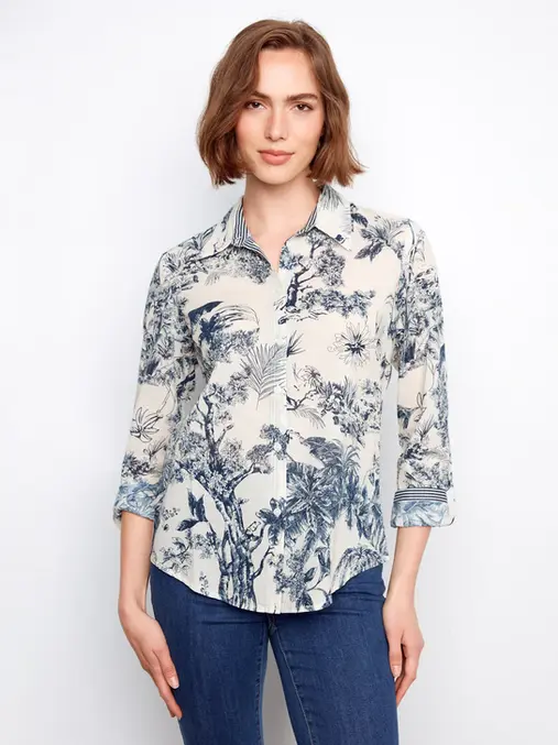 Printed Cotton Voile Button-Up Blouse