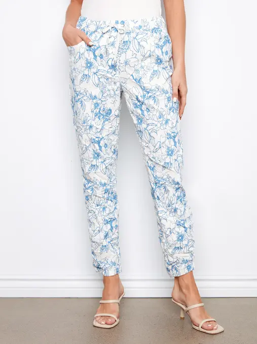 Transform your summer attire with our Printed Crinkle Jogger Pants, adorned with a captivating floral blue design. Made from stretchy fabric and featuring a drawstring waist, they offer a flattering fit for any figure. Perfect for a coastal getaway or a casual day out, these joggers are an essential addition to your wardrobe for a polished and comfortable look.