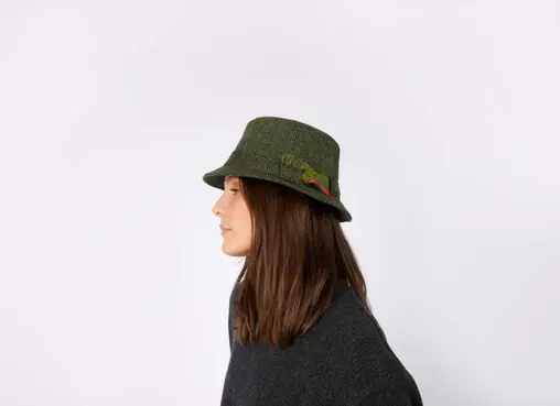 At Hanna Hats we use the highest quality tweeds to create our patchworks, and often cut patches from irregular shapes which are a by-product of our production, adding additional sustainability credentials to this eco-friendly cloth.